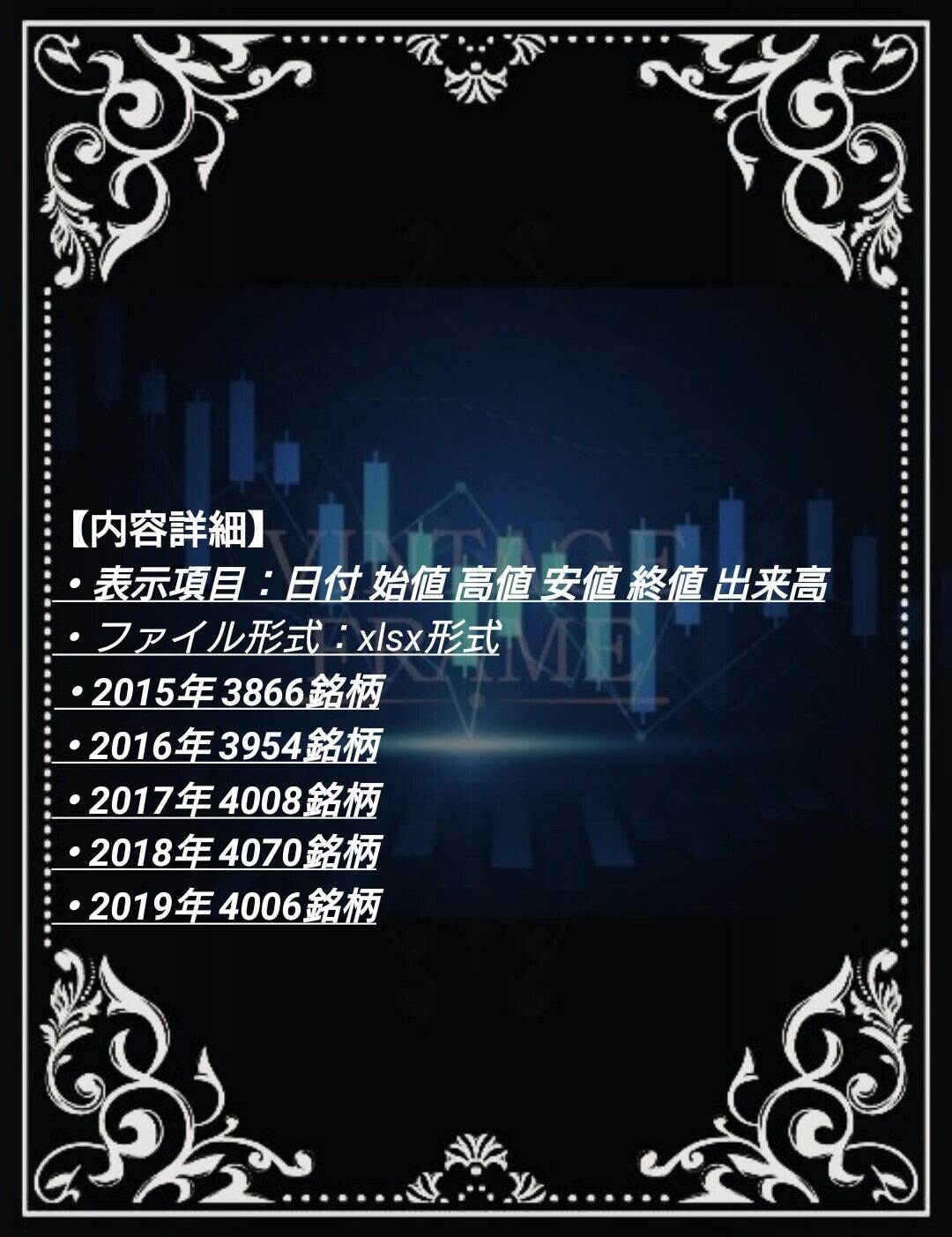 ☆時系列データ、毎日の値動きのデータ、仮想通貨データに記載されている銘柄リストメールにて配布致します☆