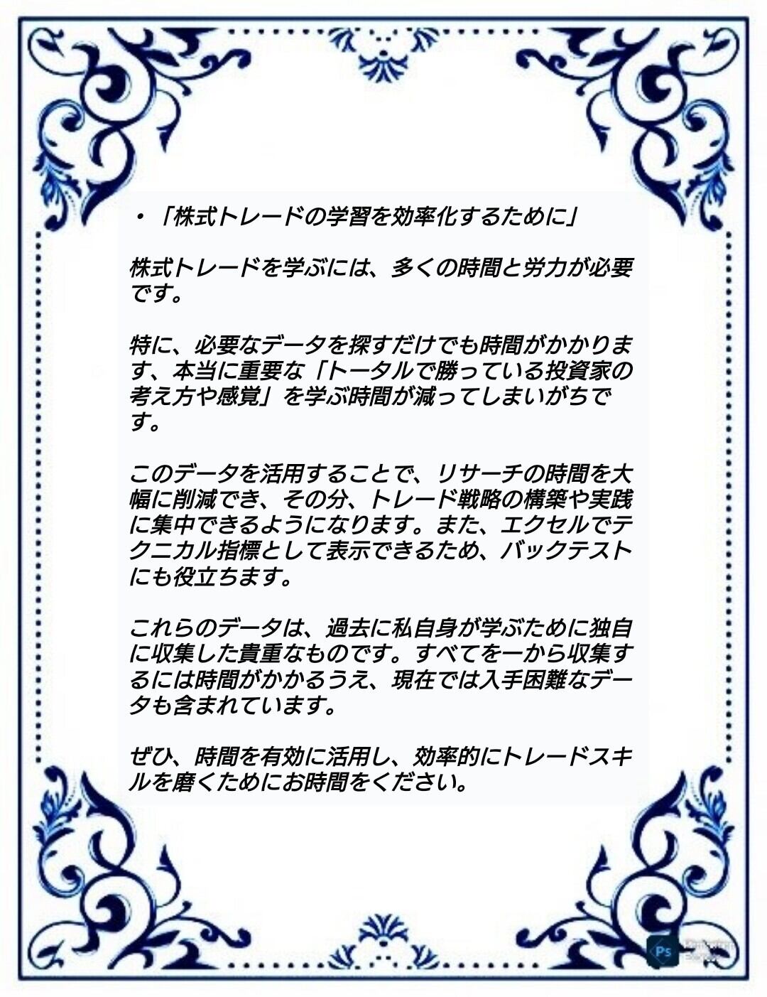☆時系列データ、毎日の値動きのデータ、仮想通貨データに記載されている銘柄リストメールにて配布致します☆